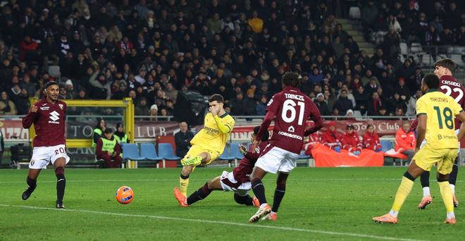 下半场易边再战。第47分钟,恩昆库在禁区中路接到奇克的回传球,直接射门,结果踢得有点正。门将把球没收了。第66分钟,AC米兰做出换人调整,普利希奇替补上场,巴尔泰萨吉被换下。这个换人起到立竿见影的效果。普利希奇刚上场1分钟就进球了,扳平了比分!随后,普利希奇再进一球,禁区中路包抄推射打进,梅开二度,帮助米兰完成反超。最后时刻普利希奇再进一球只可惜被判越位。最终,AC米兰3-2逆转都灵。